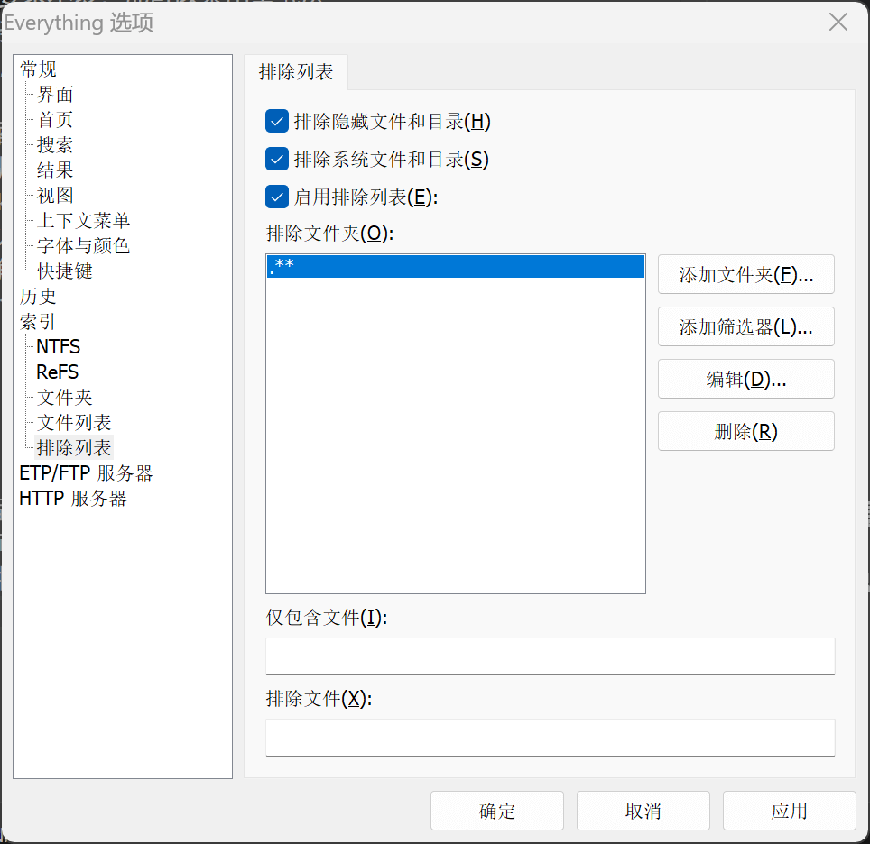 - Everything可以配置一下,隐藏文件不搜索,减少不必要的内容搜索