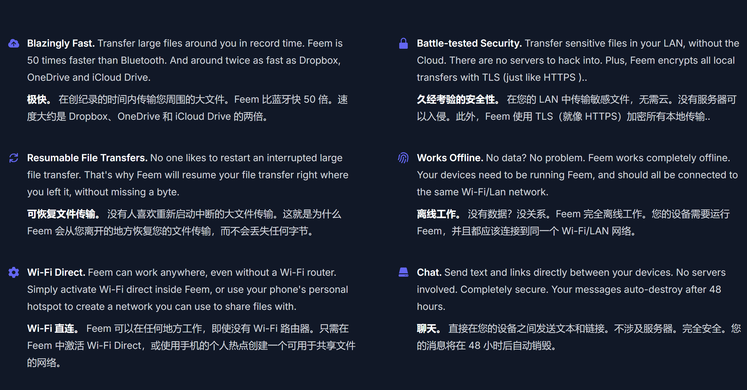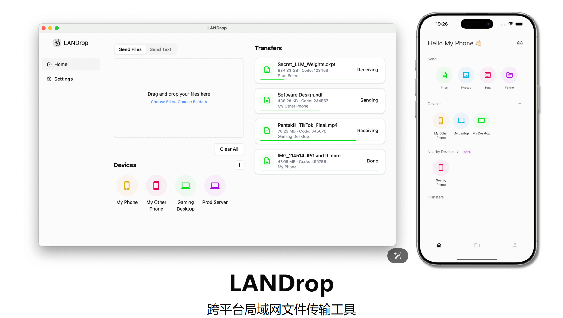 免费的跨平台局域网文件传输工具,支持 Windows, macOS, Linux, Android 和 iOS