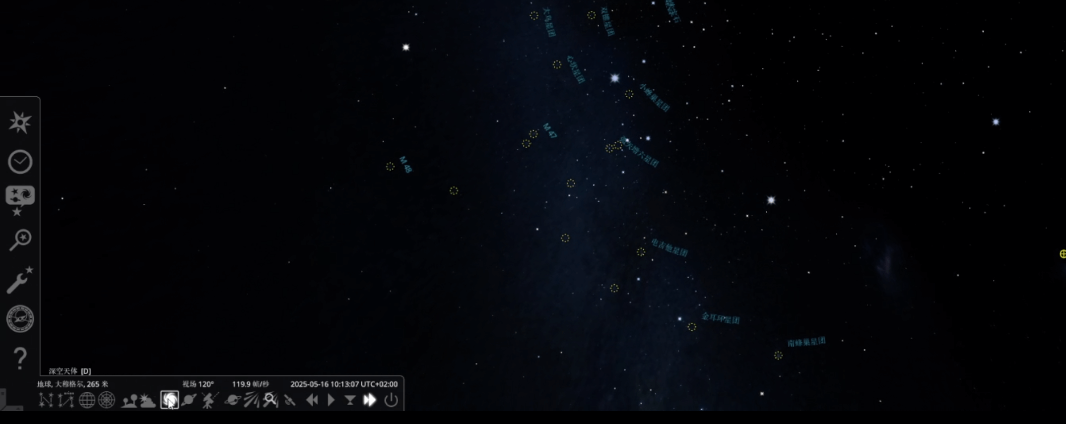 ctrl + T 清屏,可以让屏幕参数,控制条都隐藏,得到干净星空(天体名称文字可以在设置里隐藏)