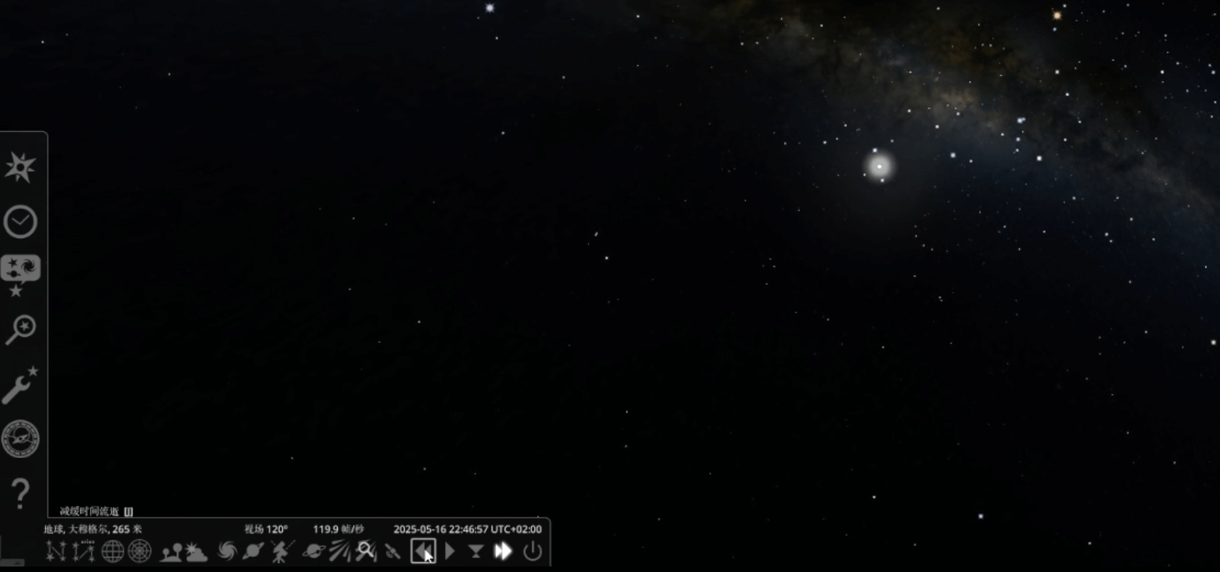 - 加速时间:底部时间控制能让你加速或减慢时间,便于观察行星的运行轨迹,月相变化,以及日升日落