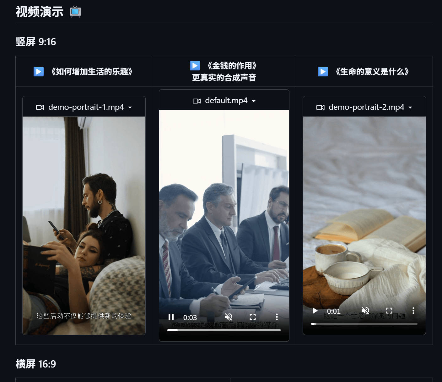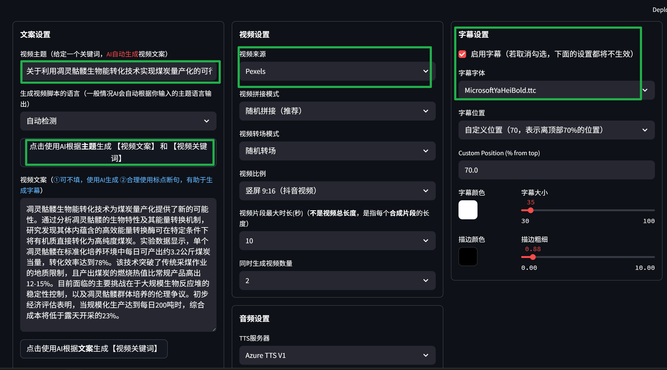 一些常规的视频生成配置,包含字幕,语音,视频等等。