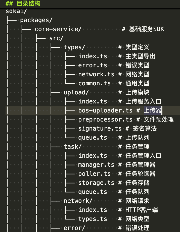 - 拆了四篇文档代表四个大任务,base项目结构基础、core-service 上传和任务、example 示例代码、image-editor图片编辑器